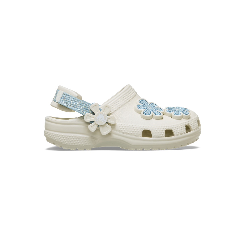 Toddler Classic Denim Flower Adjustable Backstrap Clog in Summit White